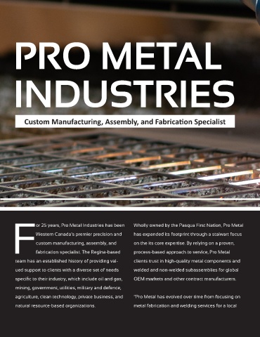 or 25 years, Pro Metal Industries has been Wholly owned by the Pasqua First Nation, Pro Metal