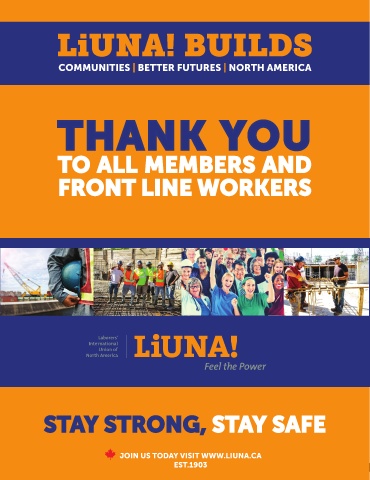 COMMUNITIES | BETTER FUTURES | NORTH AMERICA THANK YOU TO ALL MEMBERS AND FRONT LINE WORKERS STAY STRONG, STAY SAFE JOIN US TODAY VISIT WWW.LIUNA.CA EST.1903 SEP 2020 | BUSINESS ELITE CANADA 13