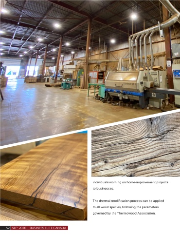 individuals working on home-improvement projects to businesses. The thermal modification process can be applied to all wood species, following the parameters governed by the Thermowood Association. 52 SEP 2020 | BUSINESS ELITE CANADA